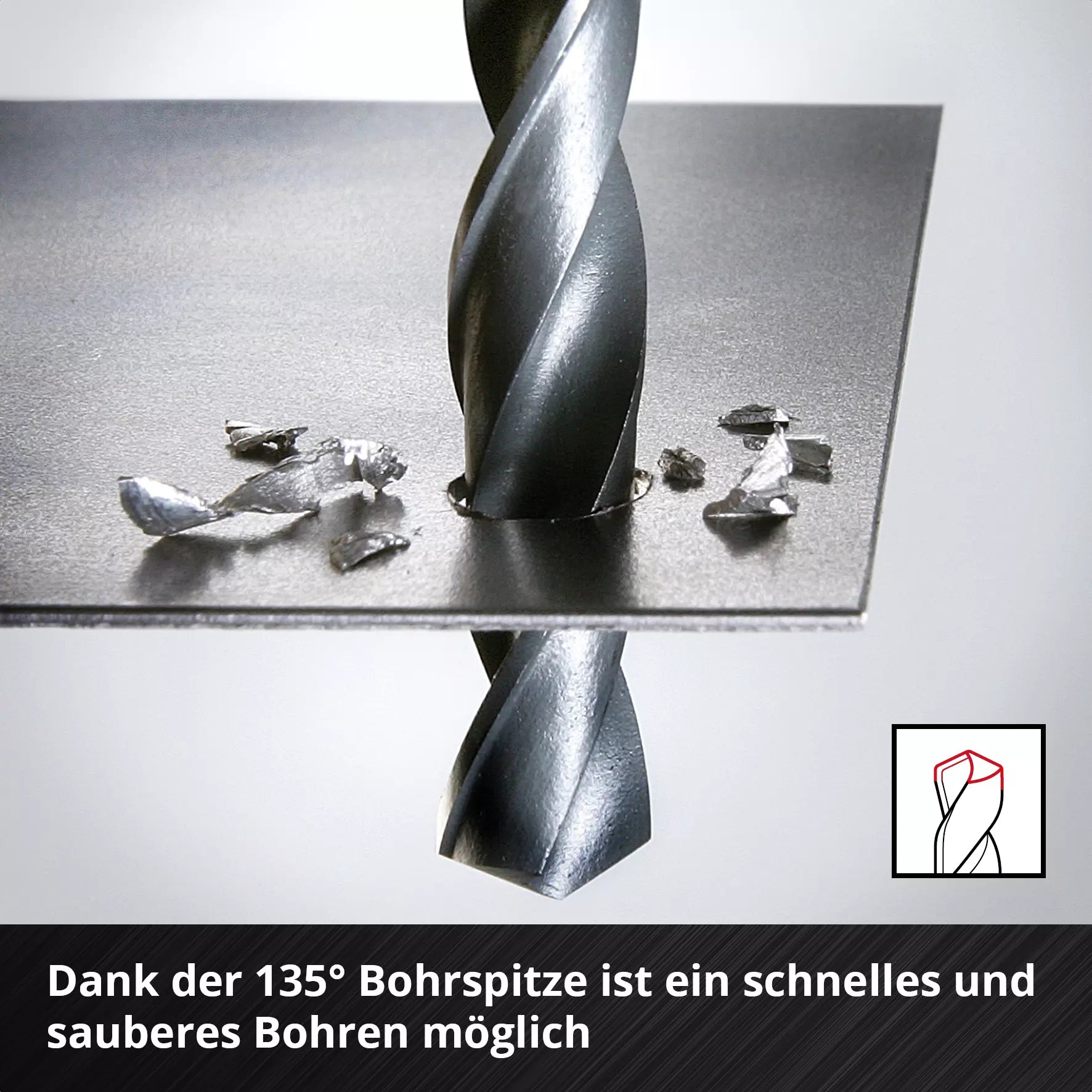 • Punta de 135° que permite una perforación rápida y precisa, reduciendo el deslizamiento sobre la superficie.
